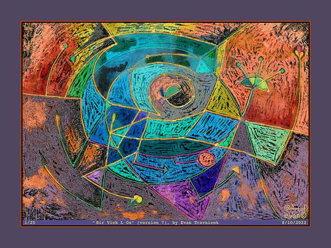 I titled this one Sir Vick L Os. I’m sure your inquisitive mind will figure out the Phoenician phake nooz. Geek beyond geek and squeak past squeak. The original drawing is of different colors than this variation. I thought I’d park my attention on this variation and write a li’l randomness about it for a blog.