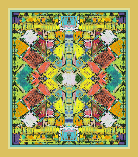 For those of you who don’t know what my Wrecked Tangles series are all about, I’ll explain briefly here. First of all, it’s a play on words—that is, wrecked tangles played upon the word “rectangles.” The word “encircled” means I sometimes employ the usage of circles with the predominately rectangular shapes that compose the series. I’m trying to give a colorful expression to rectangular shapes and objects in various stages of entropy through abstract designs.