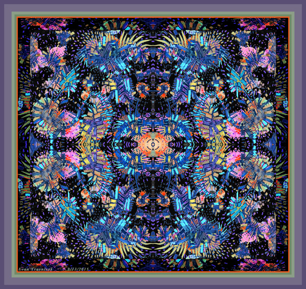 This piece has a centralized center of interest as a symmetrical composition. Therefore, I felt that the center should stand out to the viewer, rather than the edges. While it might be an interesting challenge to make a work of art that capitalizes on the extreme edges of its boundaries, that wasn’t the intent of this piece.