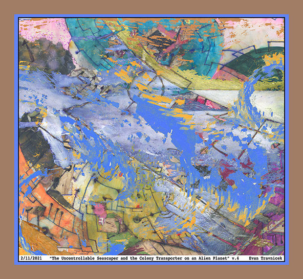 I titled this piece a long title. I used to be a landscaper and I wanted to imagine what it would be like to be a seascaper, if there is such a thing. Anyway, I made it up. I imagined him to be rather uncontrollable, like the rest of nature. So this piece looked like a seascape to me. And the uncontrolled part is the superimposed strokes of blue. The seascaper is more of a spirit, rather than physical, hence the swirling strokes.