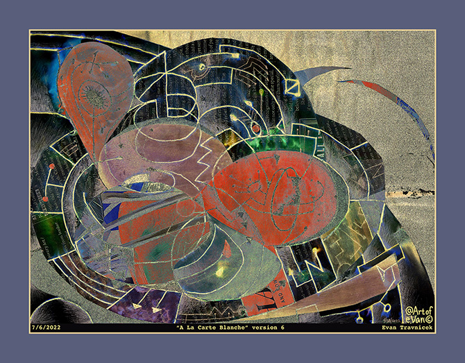 I don’t know what to write about this. It makes me think of some of Georges Braque’s paintings. Braque certainly inspires me. His form of cubism is more human, more warm in my opinion. At least some of his later work.